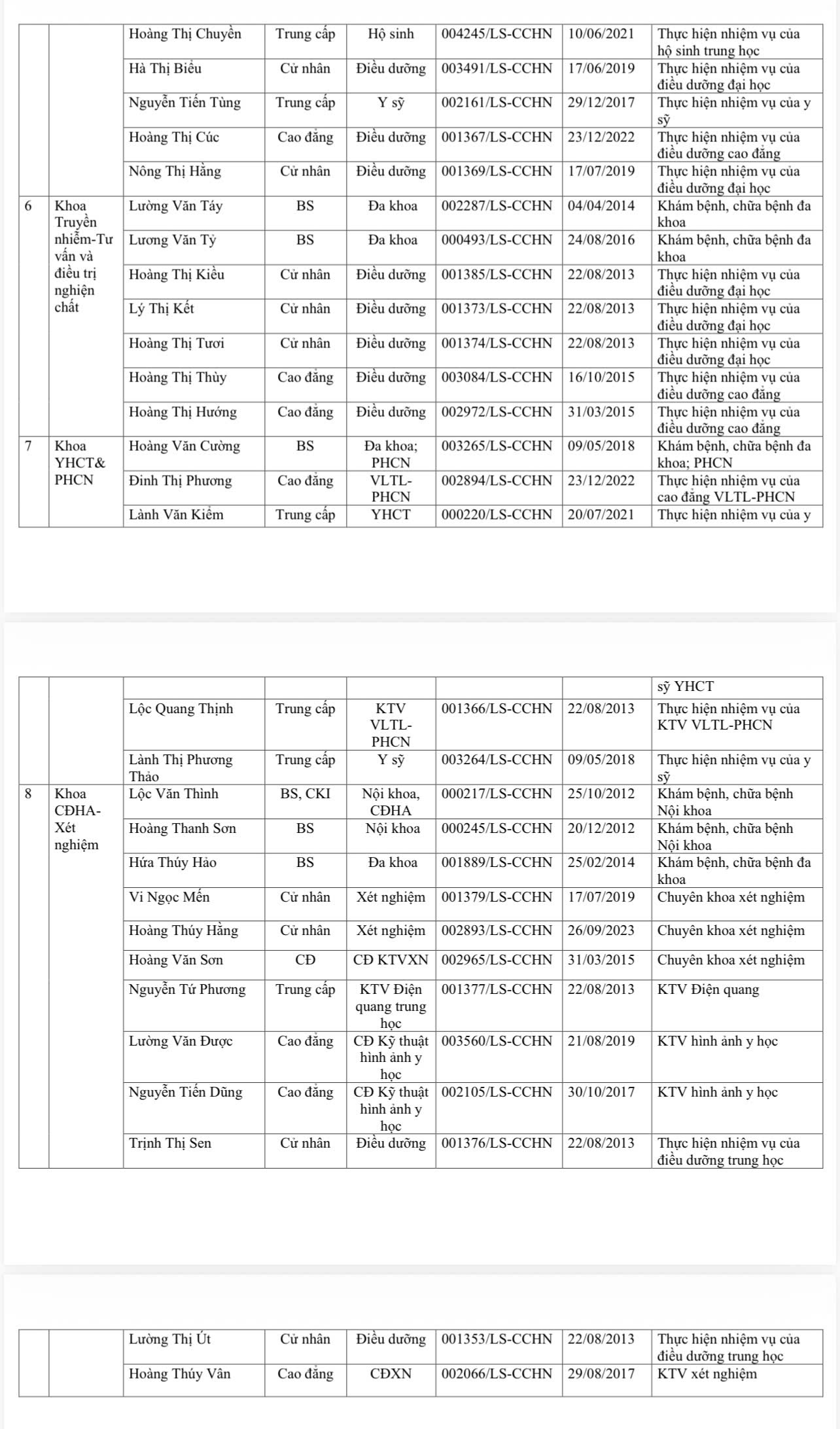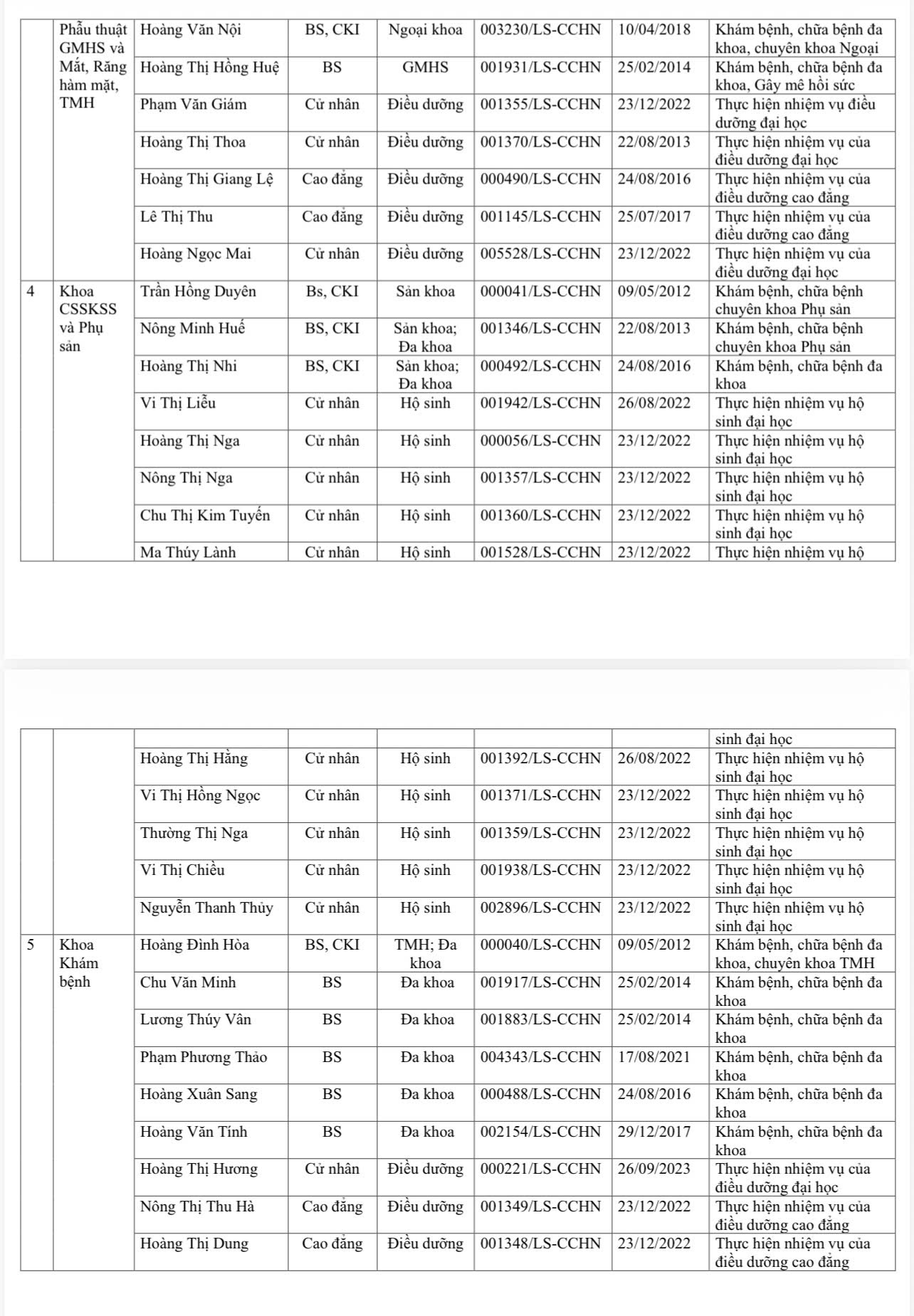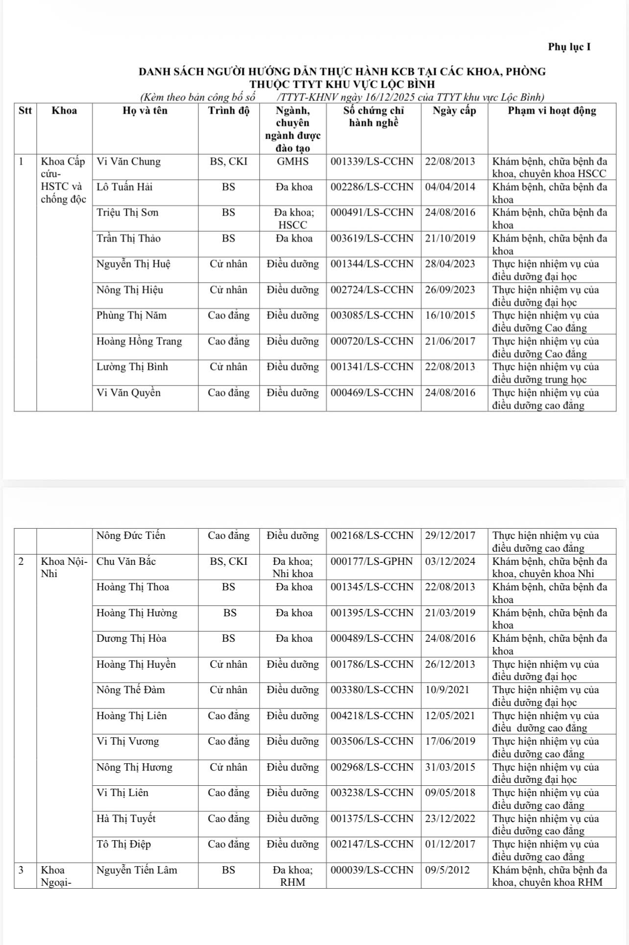 DANH SÁCH NGƯỜI THỰC HÀNH KHÁM BỆNH, CHỮA BỆNH