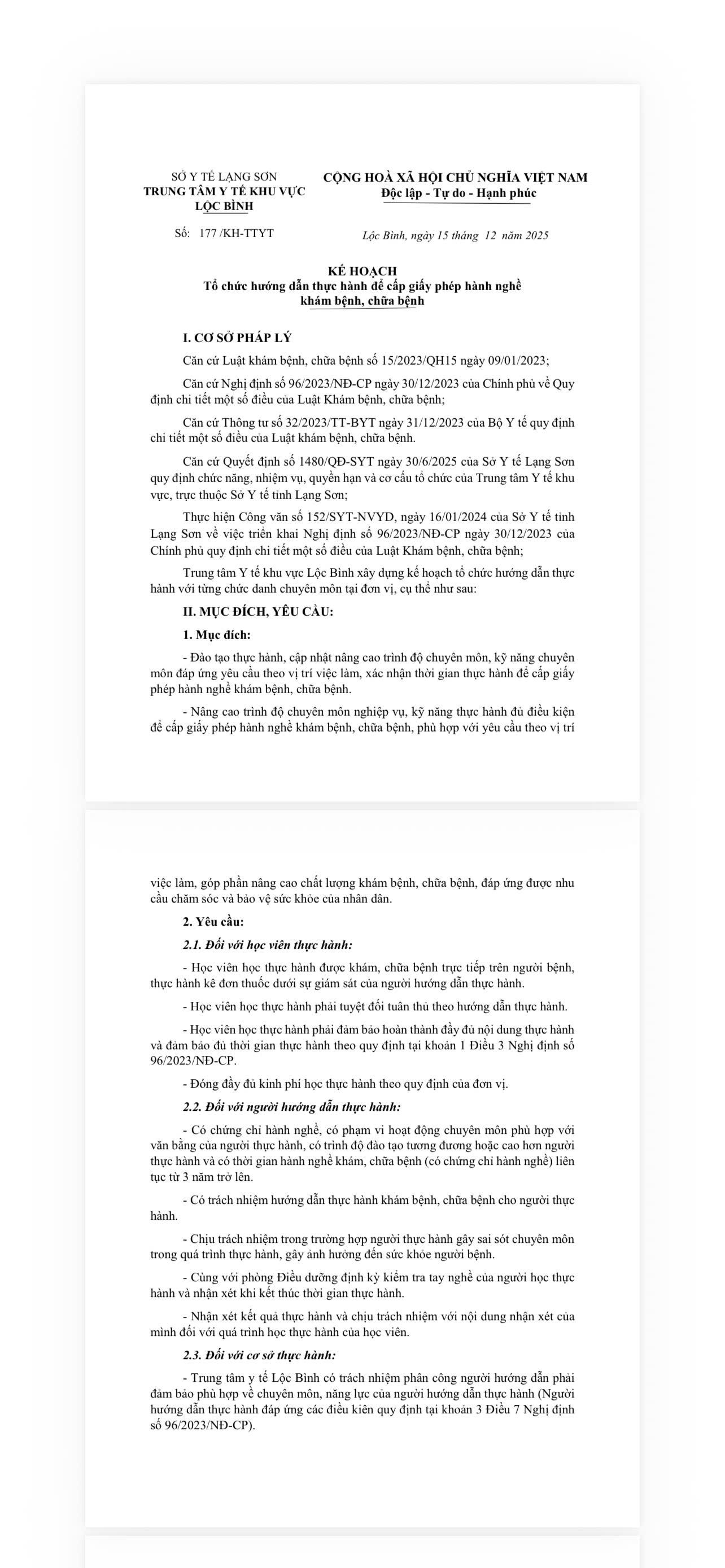YÊU CẦU BÁO GIÁ Về việc đề nghị báo giá Lắp đặt Camera tại Khu vực Ngoại, Sản, Phòng mổ thuộc Trung tâm Y tế huyện Lộc Bình năm 2025