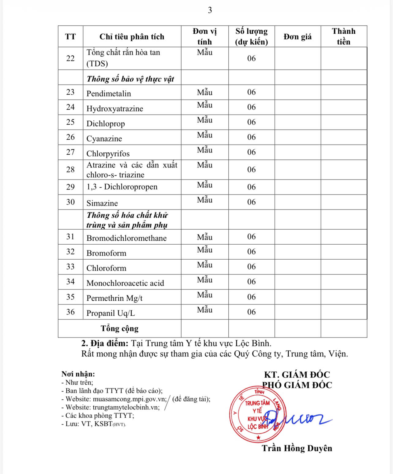 THƯ MỜI BÁO GIÁ: V/v mời báo giá hóa chất, vật tư xét nhiệm năm 2025