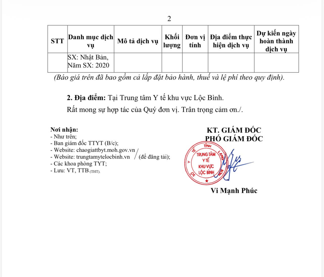 THƯ MỜI BÁO GIÁ Về việc mời báo giá Lắp camera tại điểm trạm và trạm y tế xã