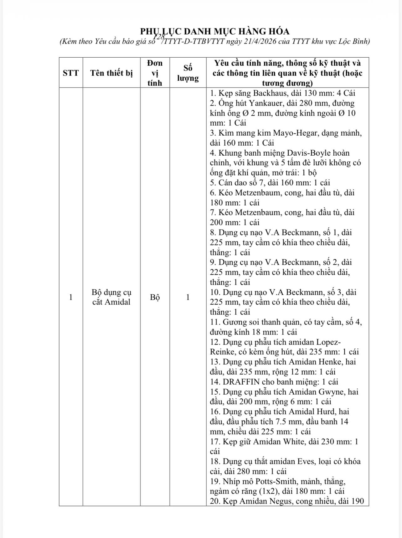 Yêu cầu báo giá Gói thầu mua sắm thiết bị y tế, công cụ dụng cụ năm 2026
