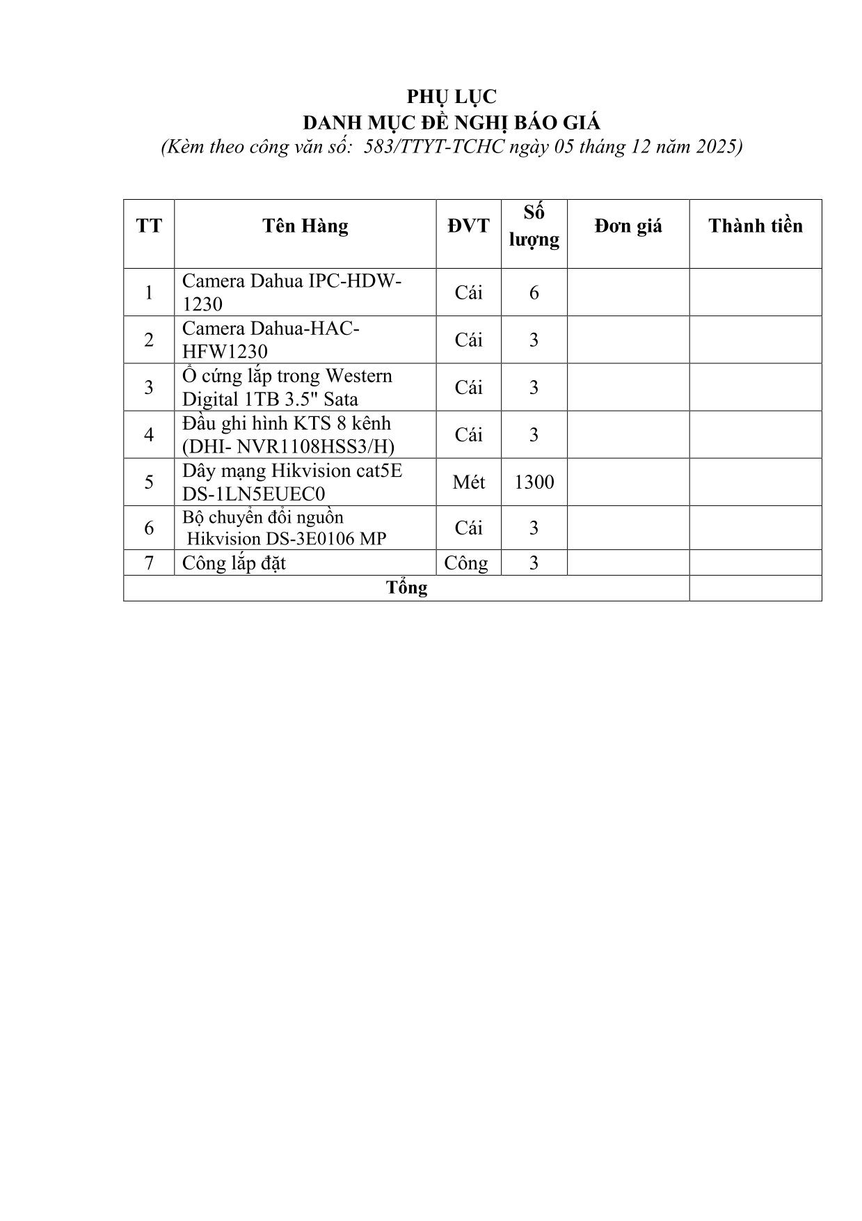 THƯ MỜI BÁO GIÁ Về việc mời báo giá Lắp camera tại điểm trạm và trạm y tế xã