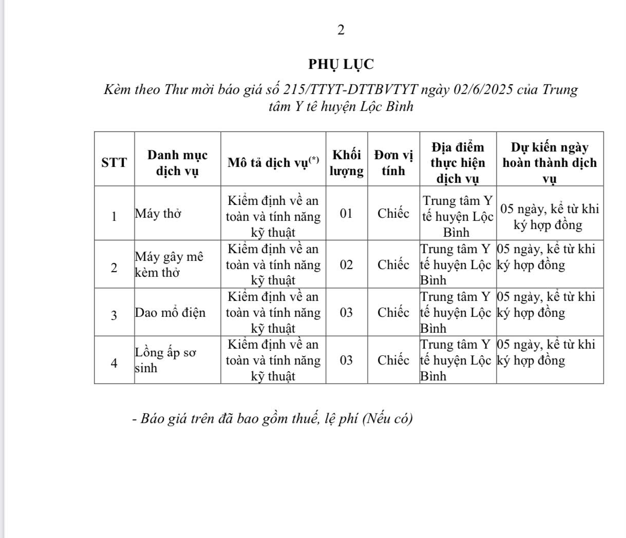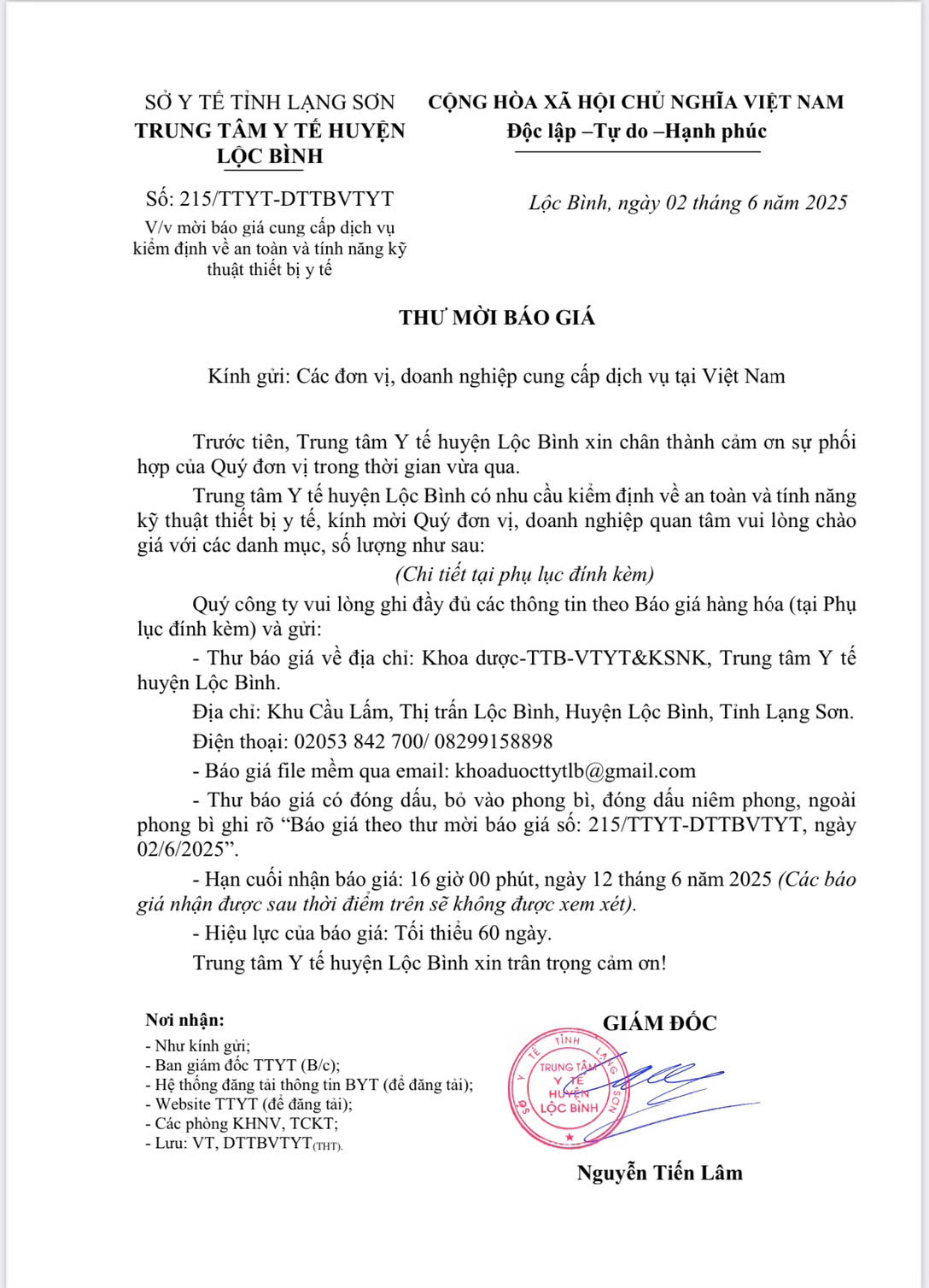 V/v Mời báo giá cung cấp dịch vụ kiểm định về an toàn và tính năng kỹ thuật thiết bị y tế